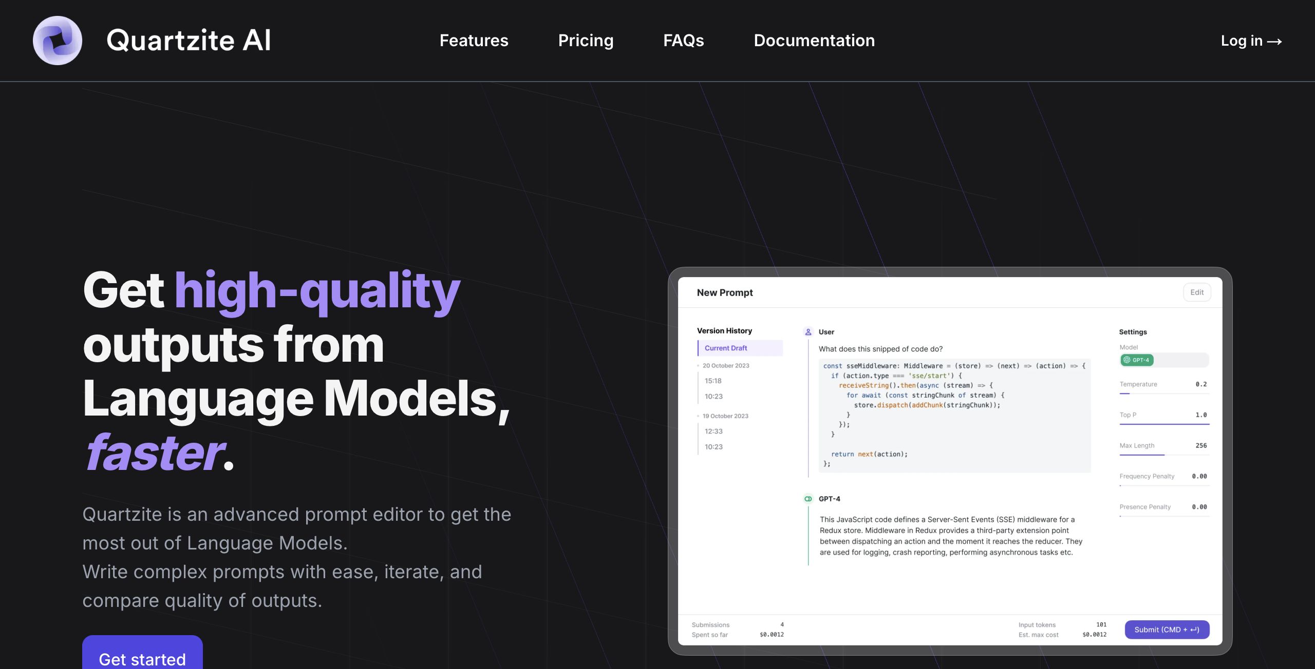 In summary, Quartzite AI is well-suited for those serious about maximizing their interaction with modern language models through advanced prompt creation and management. Its competitive pricing and rich feature set make it a standout choice in the prompt engineering space.