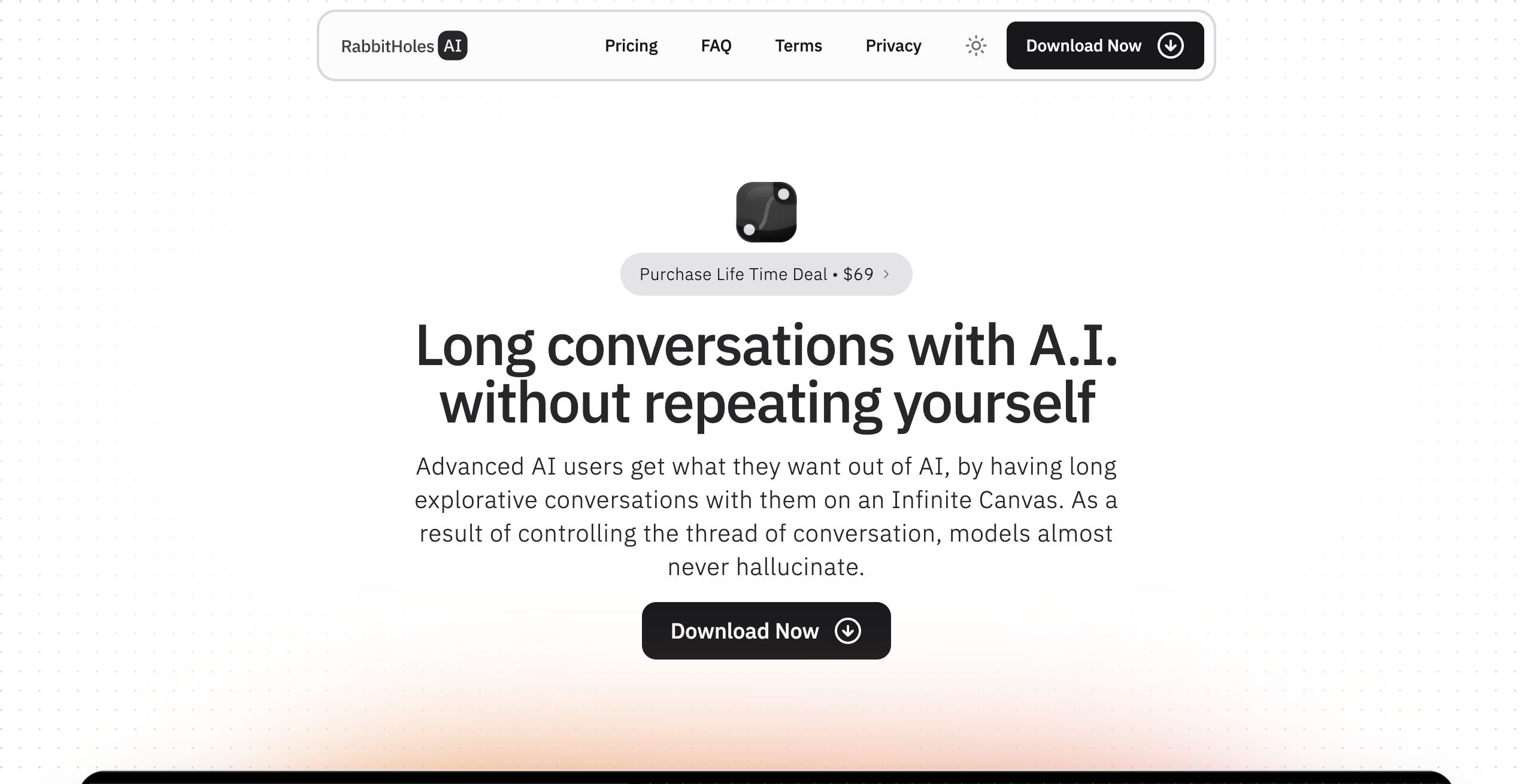 RabbitHoles is an AI-powered application specifically designed for advanced users who want to engage in deep, exploratory conversations with AI. Geared towards developers, students, researchers, knowledge workers, and polymaths, this tool allows its users to navigate an infinite canvas of ideas by building conversation threads and branching into detailed subtopics. The relevance of RabbitHoles lies in its approach to maintaining conversational context, thereby minimizing AI hallucinations and enhancing productivity.
