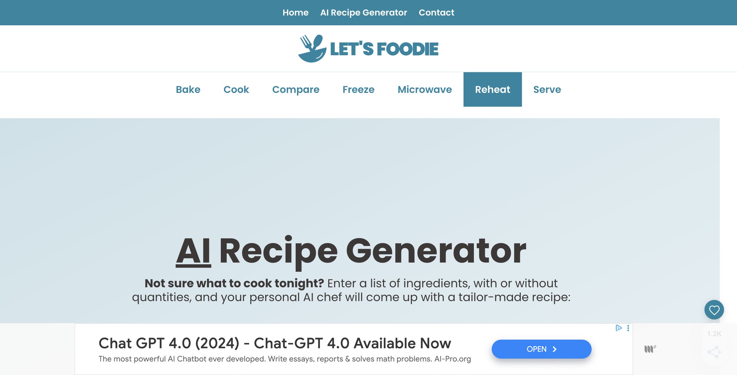 - Additional Culinary Content: Apart from personalized recipe generation, the platform features a collection of popular articles that touch on baking, cooking, leftovers, and other food-related topics.