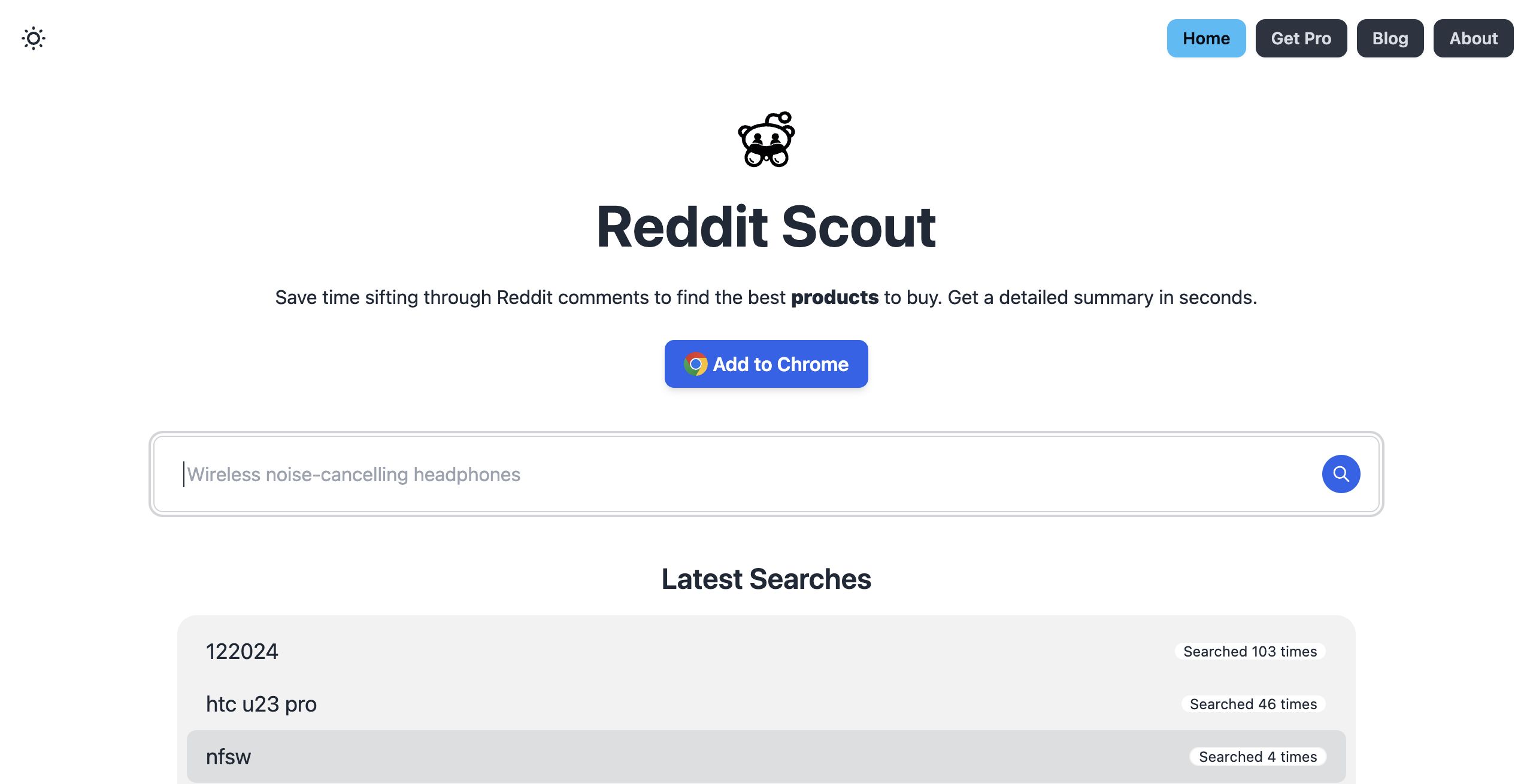 Reddit Scout is an innovative online tool that simplifies the search for top-tier product recommendations sourced from Reddit discussions. By simply entering a product name or category, users can swiftly access a curated summary of the most highly-rated comments and insights from Reddit threads. This functionality eliminates the need for tedious manual searches across multiple forums, thereby saving valuable time and effort.