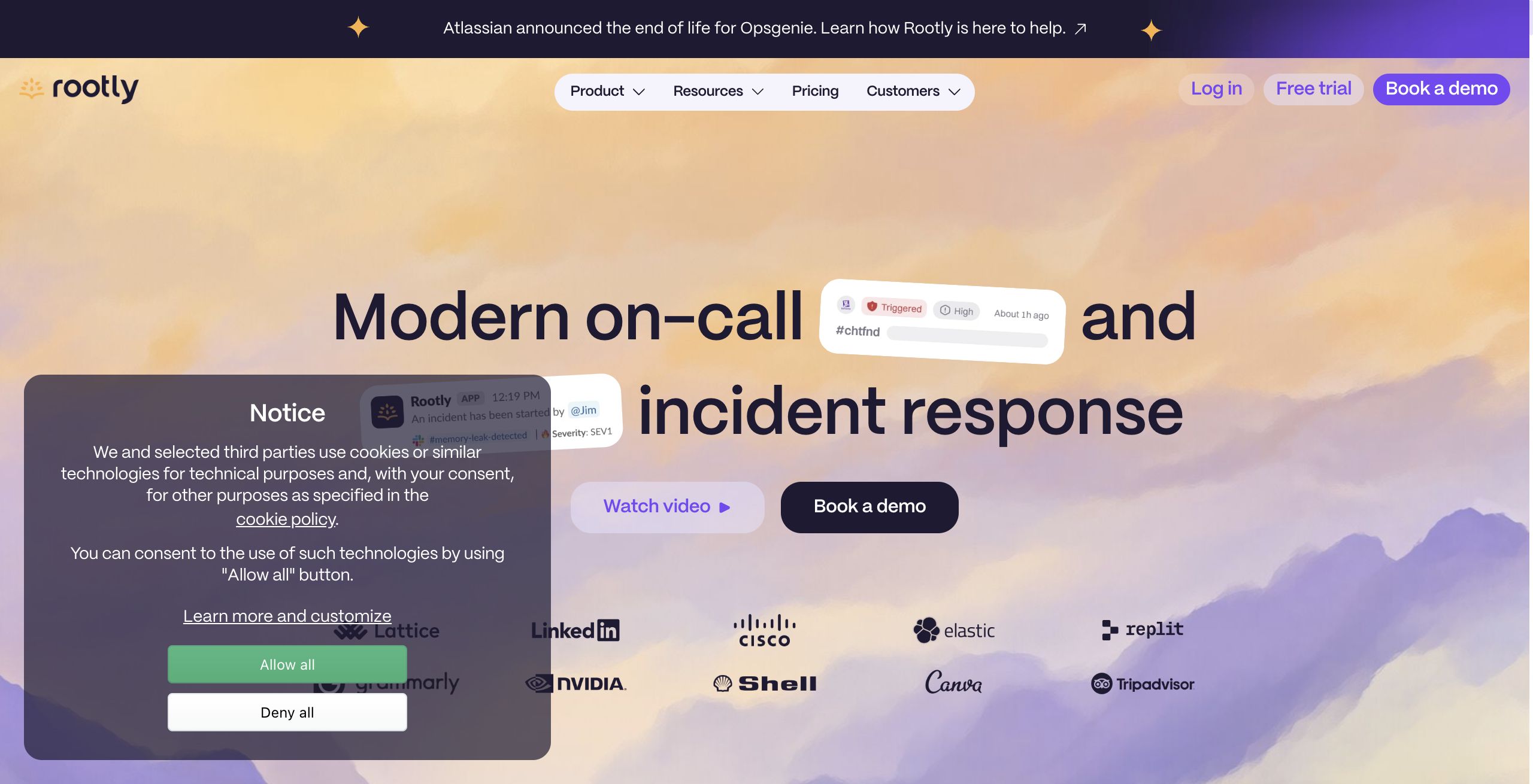 Rootly’s website emphasizes a free trial along with options to book a demo, hinting at a subscription-based pricing model tailored for varying organizational sizes—from startups to large enterprises. While explicit pricing details are not provided, the emphasis on ease-of-use and enterprise-grade capabilities suggests that Rootly’s pricing is structured to offer significant value through automation and efficiency gains, especially when compared to legacy solutions and competitors in the incident management space.