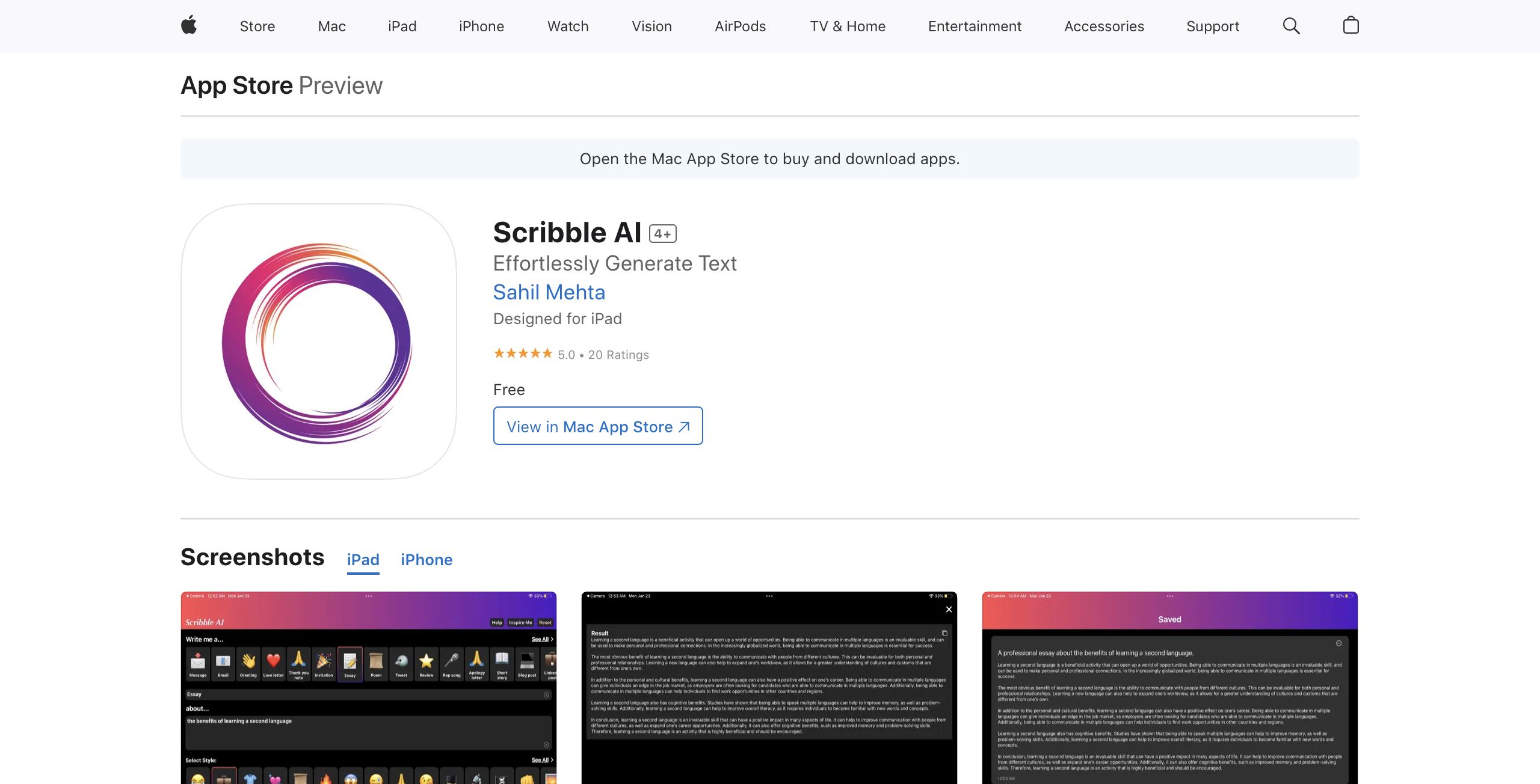 Scribble AI is available for free on the Apple App Store. Considering its robust functionality and the cutting-edge GPT-3 technology behind its operations, the app offers excellent value. Users get a powerful, cost-effective tool that stands out among competitors due to its ease of use and diverse range of content generation options.