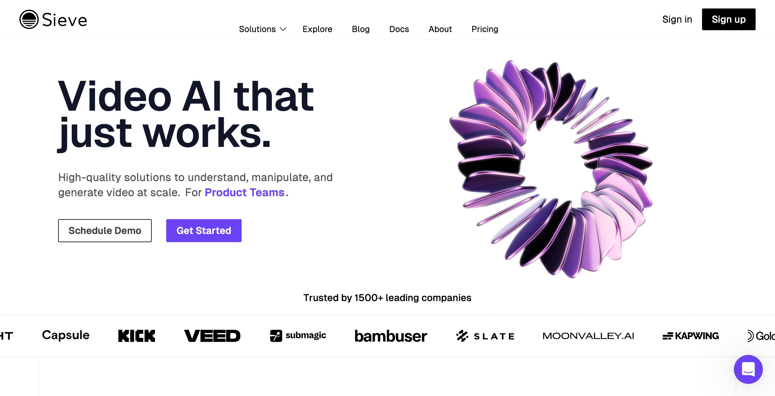 - Multi-model Integration: Sieve enables the use of various state-of-the-art models to process and generate video, making it easier to handle tasks ranging from understanding audio to generating video content.