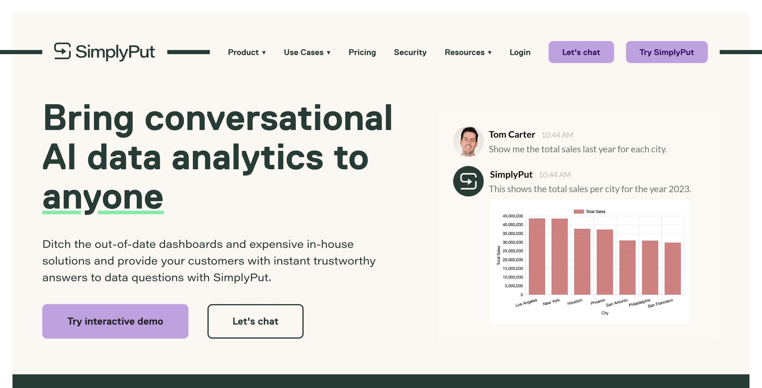 SimplyPut is a conversation-based platform designed to make data analytics accessible through natural language. By leveraging advanced AI models such as ChatGPT and GPT-4, SimplyPut allows users to interact with their data without the need for coding expertise. The platform targets business stakeholders, data analysts, and product teams who need fast, reliable insights from complex datasets. Its relevance is underscored by the increasing demand for tools that combine ease of use with robust data security and accurate analytics.