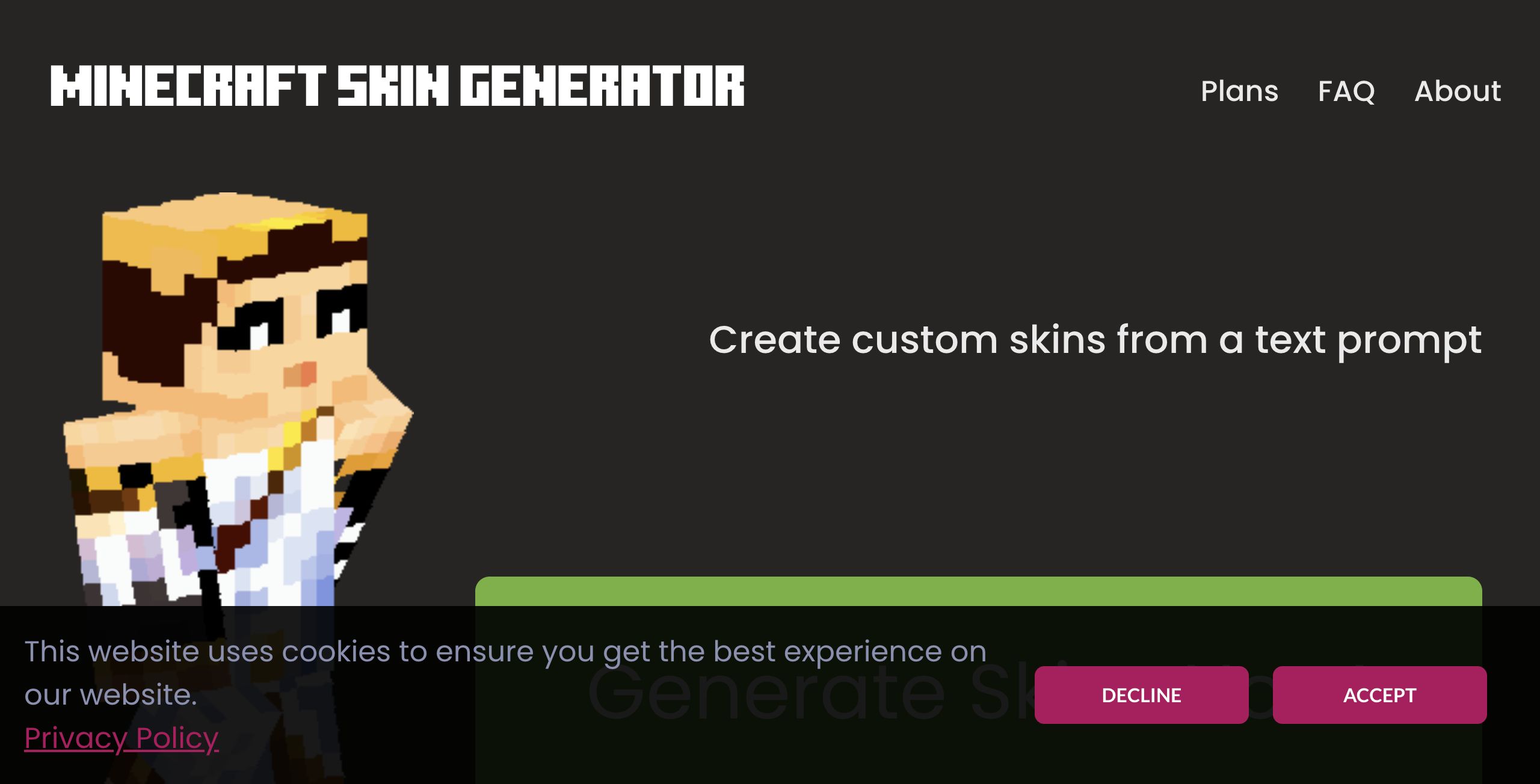 • User-Friendly Interface: The website presents an intuitive way to navigate plans and generate skins easily, streamlining the overall user experience.