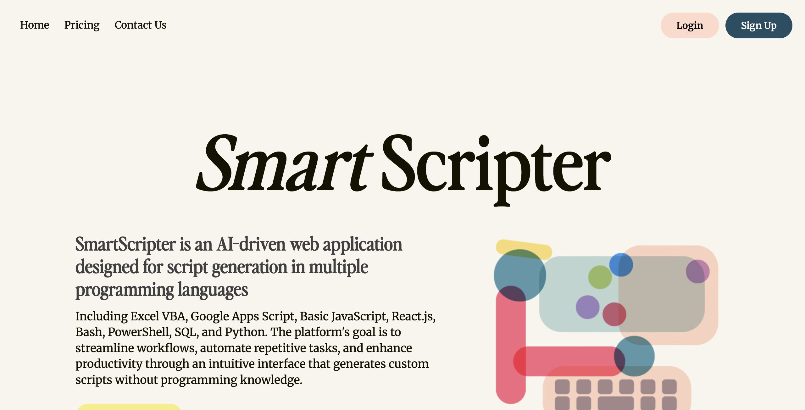 SmartScripter is an AI-driven web application designed to generate custom scripts across a wide range of programming languages, including Excel VBA, Google Apps Script, JavaScript, React.js, Bash, PowerShell, SQL, and Python. It is specifically tailored for professionals in finance, marketing, IT, and other industries who frequently handle data analysis, spreadsheet management, administrative tasks, or web development. SmartScripter is being reviewed here due to the increasing demand for automation tools that help streamline workflows and reduce repetitive coding tasks, making it highly relevant in todayβs productivity-driven work environment.