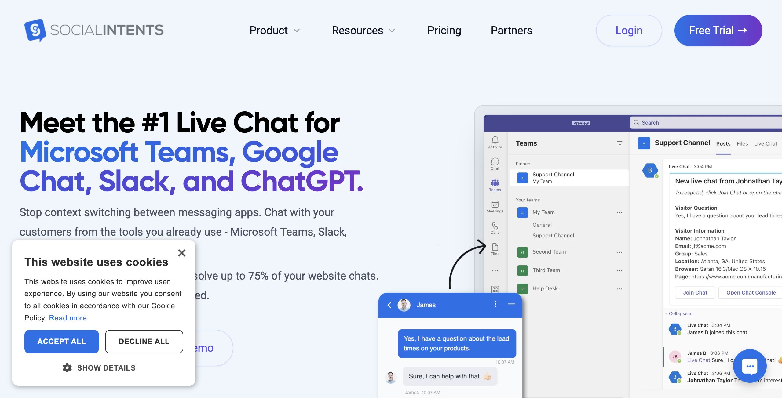 Social Intents is an innovative platform designed to enhance customer engagement through the seamless integration of live chat and AI-driven chatbots. By connecting with widely used communication tools such as Microsoft Teams, Slack, and Google Chat, it empowers businesses to interact with website visitors in real time, providing effective customer support, lead generation, and valuable insights.