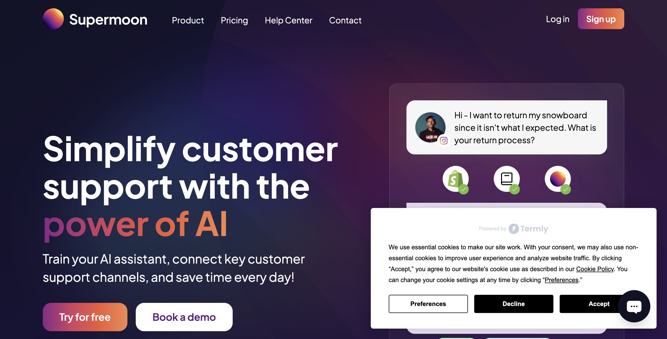 Supermoon is a robust tool for e-commerce businesses seeking to elevate their customer service operations. Its combination of AI-driven features and integration capabilities make it particularly beneficial for retailers using platforms like Shopify. However, businesses not using supported platforms or those unfamiliar with AI tools might face initial challenges in adoption.