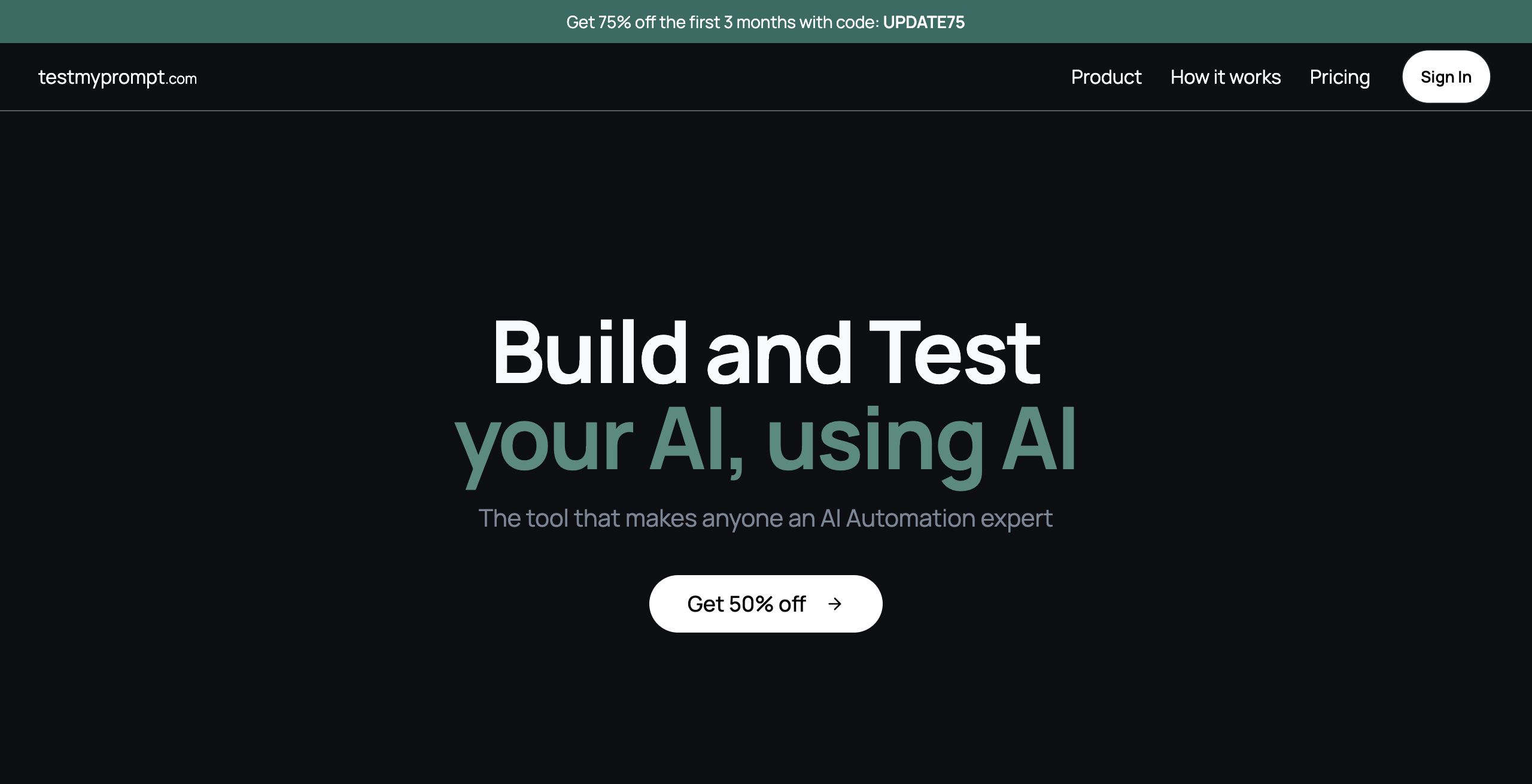 The pricing strategy for Testmyprompt.com includes attractive introductory offers, such as 75% off the first 3 months with a specific code (UPDATE75) and an additional offer of 50% off. These promotional discounts suggest that the company is positioning the tool in a competitive space, making it accessible to agencies looking to optimize their AI processes at a lower initial investment. When compared to the value provided—accelerated prompt testing and refinement—the pricing appears to be competitive, especially for agencies aiming to boost efficiency and reduce operational time.