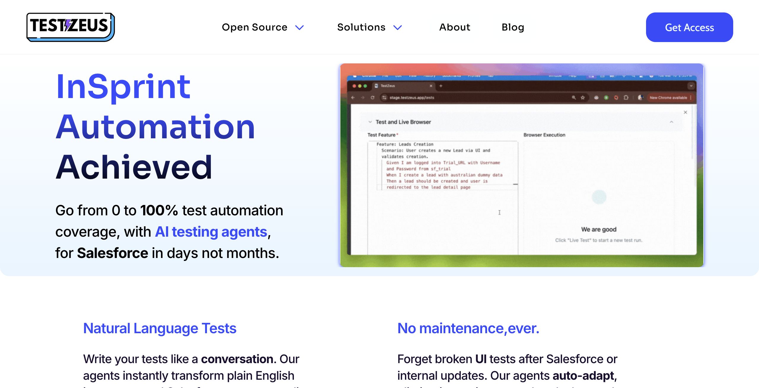 TestZeus is an open-source test automation framework specifically designed to automate UI testing for Salesforce applications. Tailored for QA engineers, testers, and developers working within the Salesforce ecosystem, TestZeus addresses the unique challenges of Salesforce UI testing. This review examines its capabilities in streamlining test automation, reducing maintenance headaches, and significantly improving test coverage, making it a relevant option for teams looking to accelerate their QA processes.