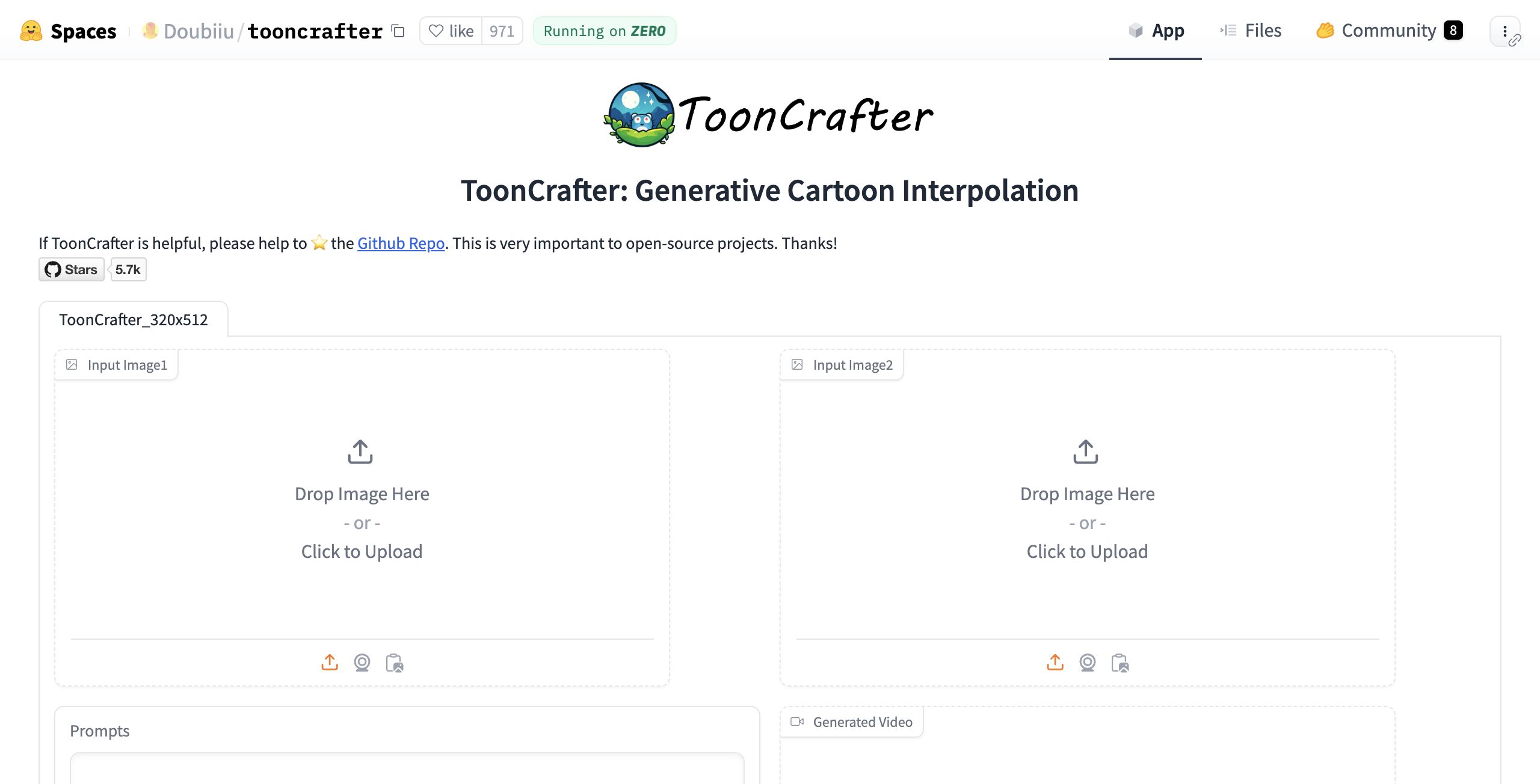 ToonCrafter is a specialized AI tool designed to transform two static cartoon images into a smooth, animated sequence. Developed with animators and graphic designers in mind, this innovative software leverages advanced image-to-video diffusion techniques to provide a seamless transition between visuals. In today's rapidly evolving digital art landscape, ToonCrafter stands out as a timely solution for creatives looking to enhance the fluidity and appeal of their cartoon imagery.