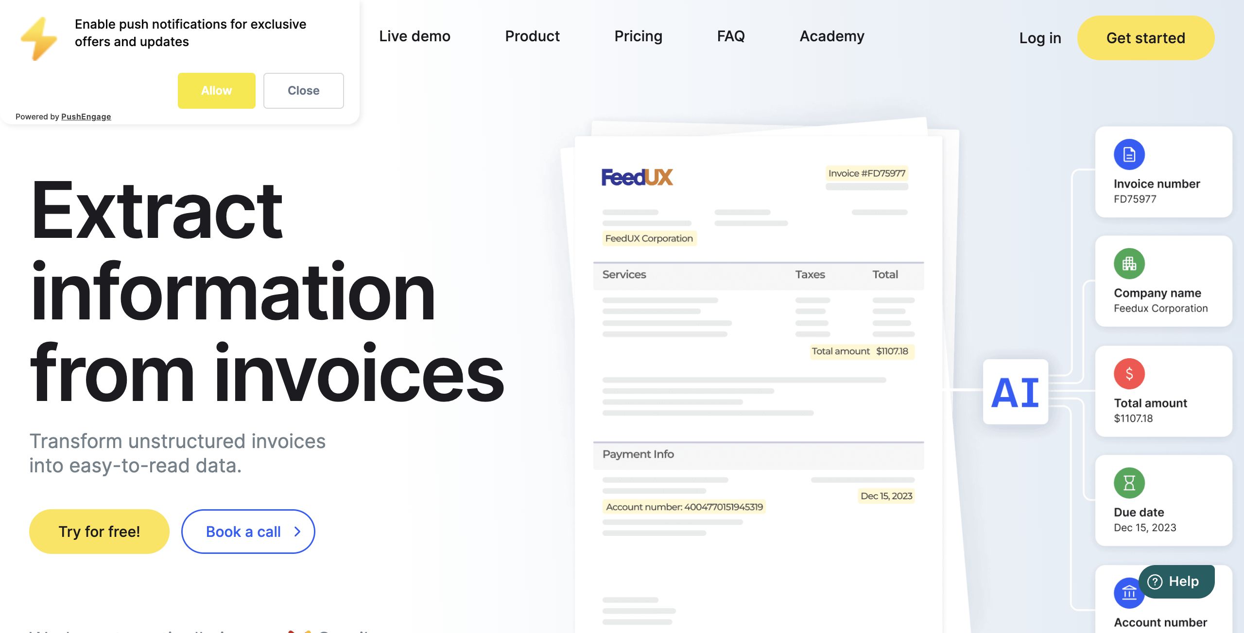 - Intelligent Data Extraction: Uses an advanced AI model trained on a large corpus of documents to convert unstructured invoice data into a structured and easily accessible format.