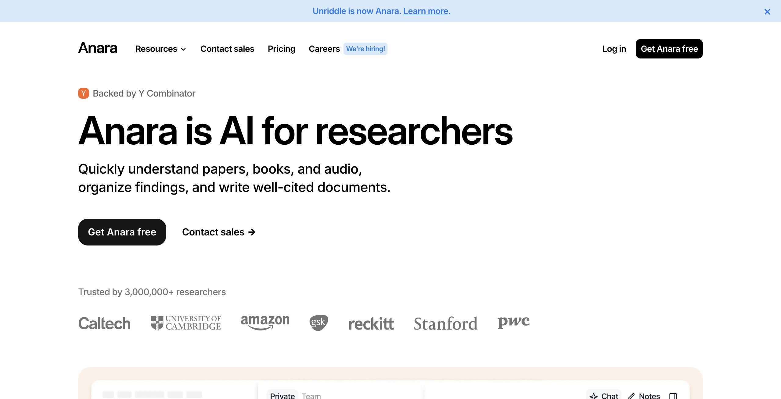 Anara (formerly known as Unriddle) is an AI-powered research tool designed to help researchers, academics, and professionals read, write, and learn faster. Its main purpose is to simplify complex topics, generate quick summaries and insights, and improve the overall efficiency of engaging with scholarly content. Given today’s data-driven and information-rich research environment, Anara is highly relevant for anyone looking to streamline their literature reviews, annotations, and document management.