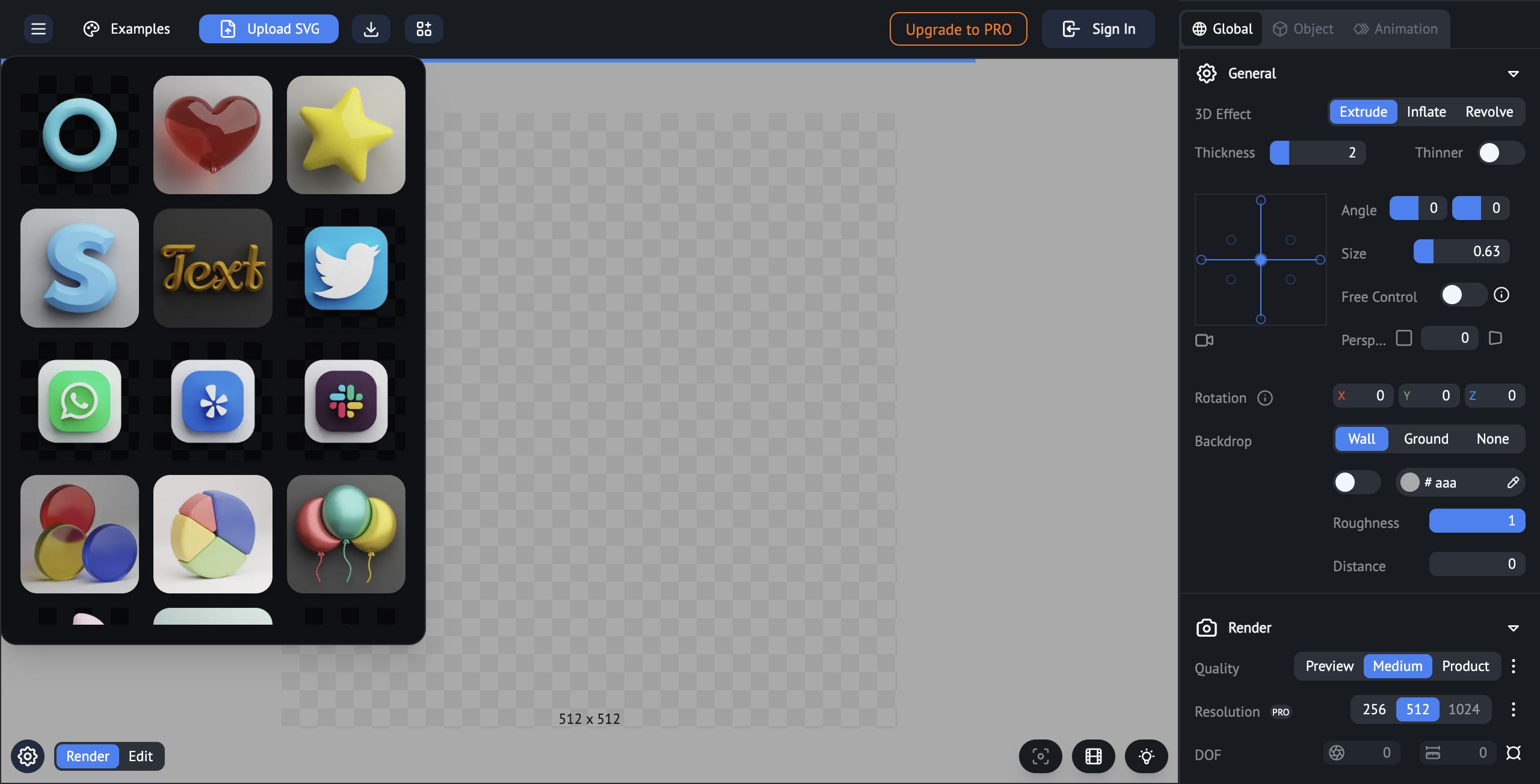 The Vector to 3D tool appears to offer both free and premium options. Users can start with a free version which provides essential functions and lower resolution outputs, making it accessible for casual projects or experimentation. The PRO upgrade unlocks additional features such as higher resolution outputs and potentially more advanced customization settings. This flexible pricing structure allows users to scale their investment according to their needs, offering good value for both beginners and professionals seeking more advanced capabilities.