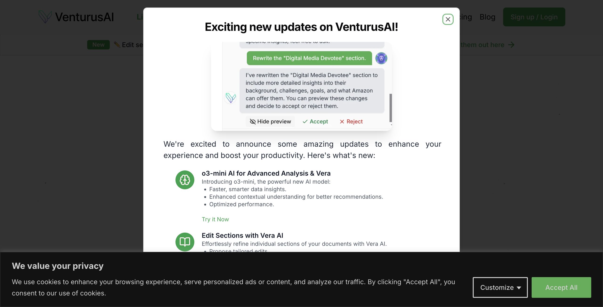 - Edit and Refine Content: The inclusion of Vera AI allows users to propose and preview tailored edits in real time, enhancing the overall quality of the generated content.