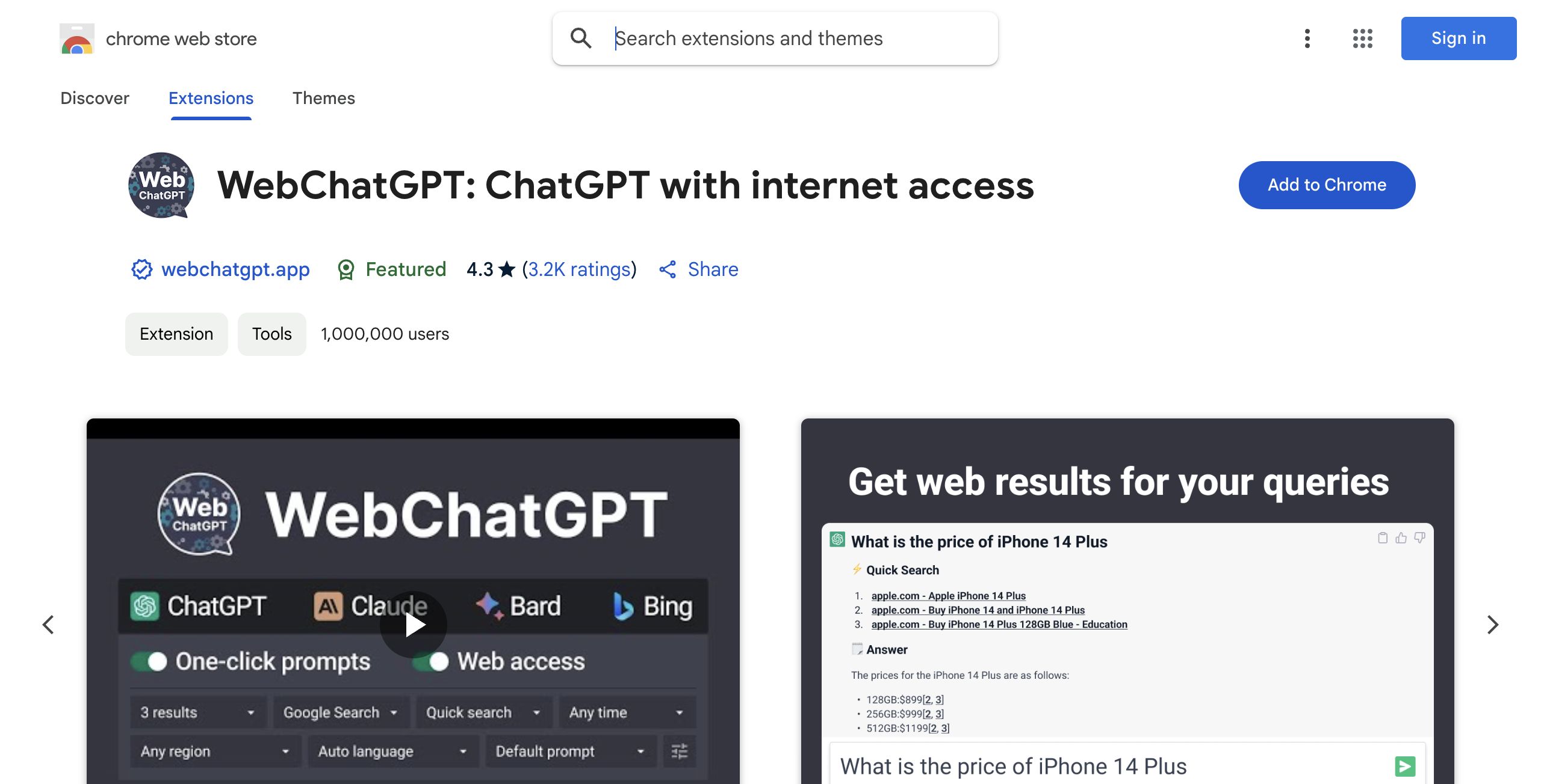 WebChatGPT is a Chrome extension designed to augment your ChatGPT prompts with real-time web search results. It is built for ChatGPT users—both free and Plus subscribers—who need access to the latest online information, bridging the gap in ChatGPT’s knowledge cutoff (currently only available up to 2021). This review examines how WebChatGPT enhances the classic ChatGPT experience by incorporating current search results, making it an appealing addition for professionals, small business owners, and anyone looking to enrich their conversational AI interactions.